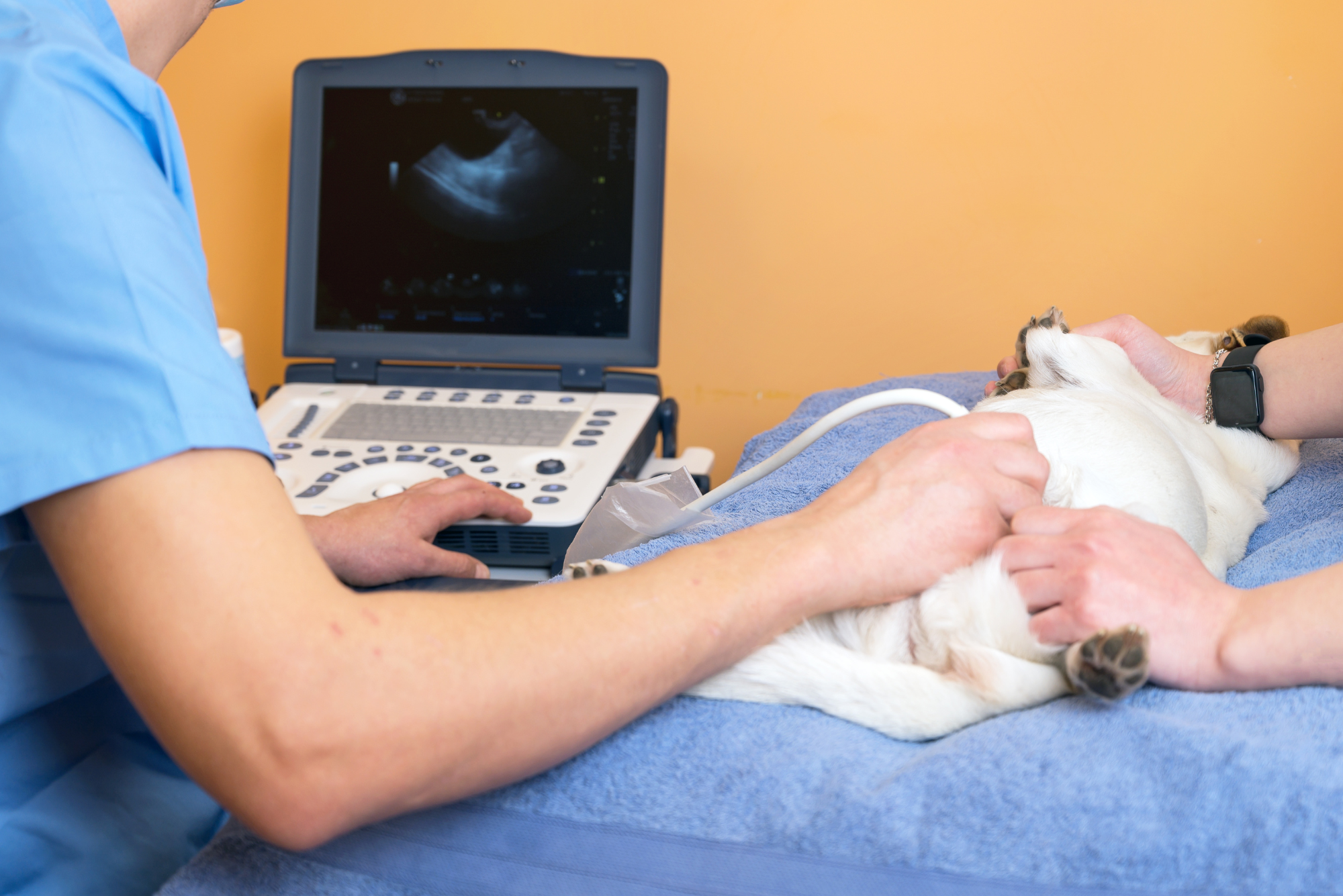 Con la ecografía veterinaria se obtiene información del animal. La prueba es totalmente indolora, emite unos ultrasonidos que se reflejan en un ordenador, donde se analizan y nos devuelve imágenes de los distintos órganos.